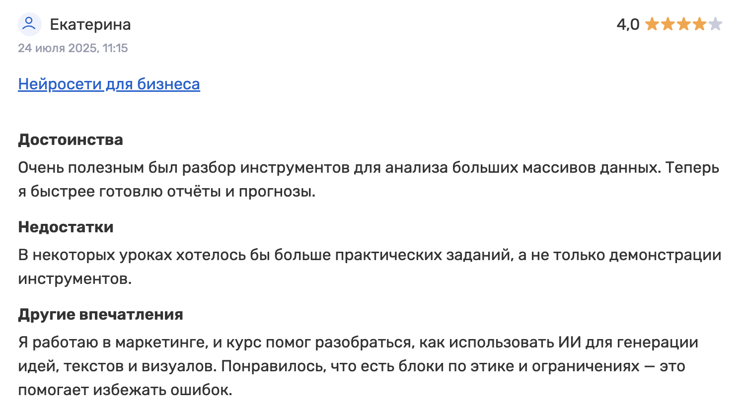 Отзывы о курсе Нейросети Для Бизнеса