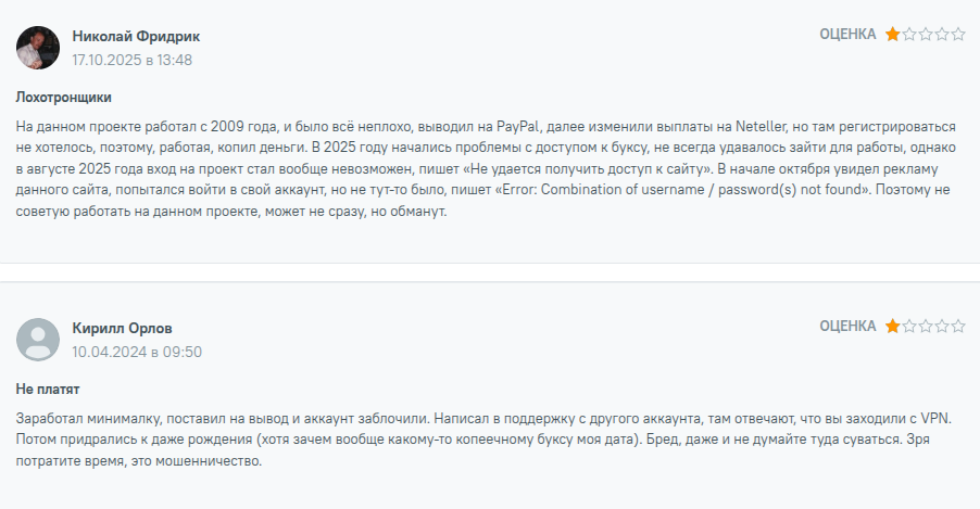Кроме того, в последнее время в Сети появляется все больше негативных отзывов о проекте — не платят, блокируют аккаунты, поддержка игнорирует обращения и т.д. Да и пользователям из СНГ здесь предлагают почти самую маленькую оплату труда по сравнению с европейцами и американцами.
