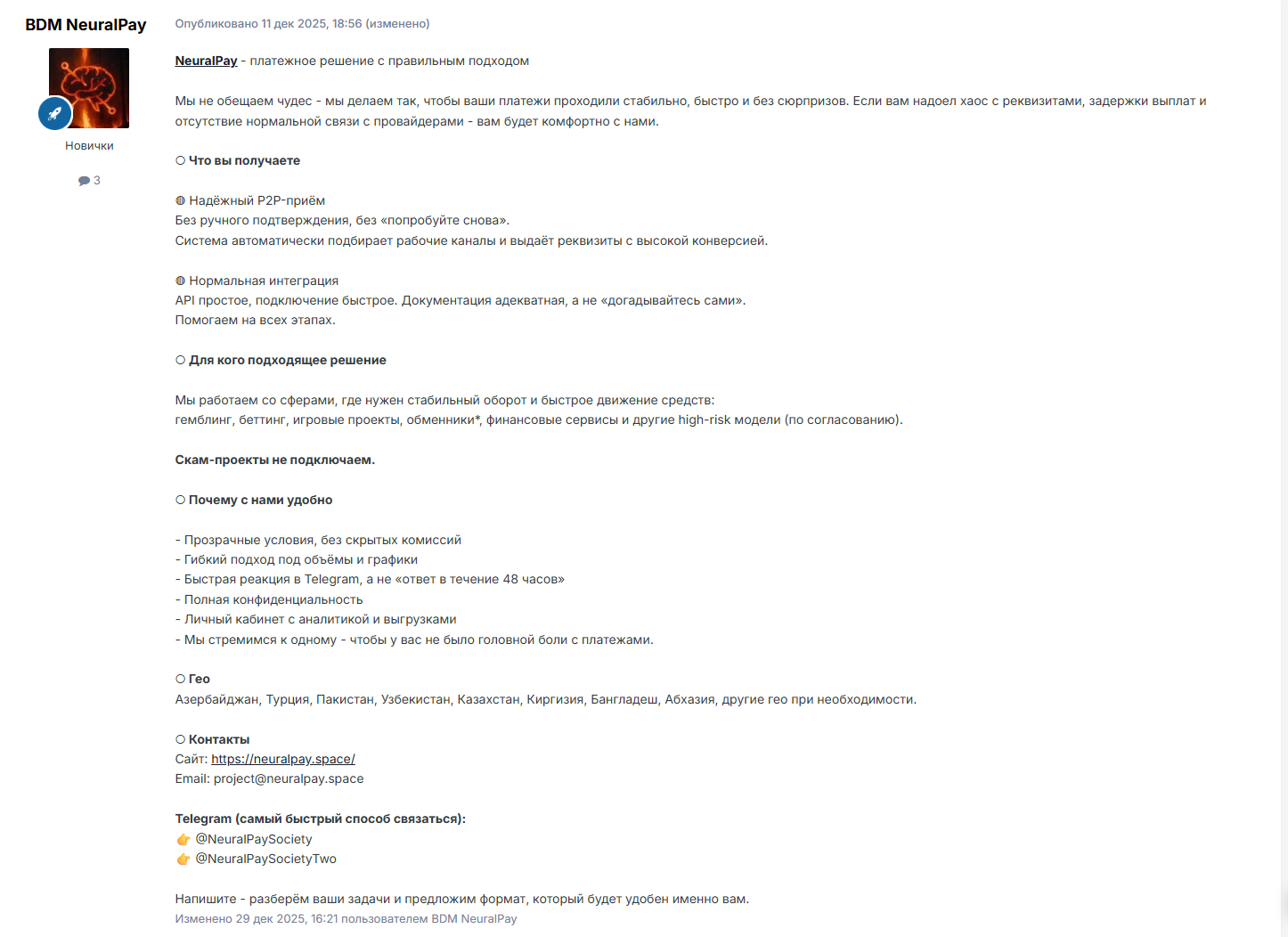 Но нажатие на них переводит на аккаунт менеджера @NeuralPayBiz.
