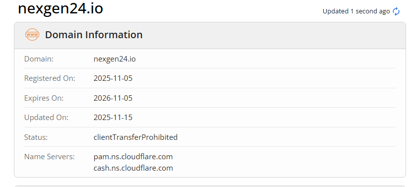 Проверка домена показала, что площадка для обмена цифровых активов появилась в ноябре 2025 года. На январь 2026 года сервис Nexgen24 io работает три месяца, хотя основатели заявляют, что присутствуют на рынке давно.