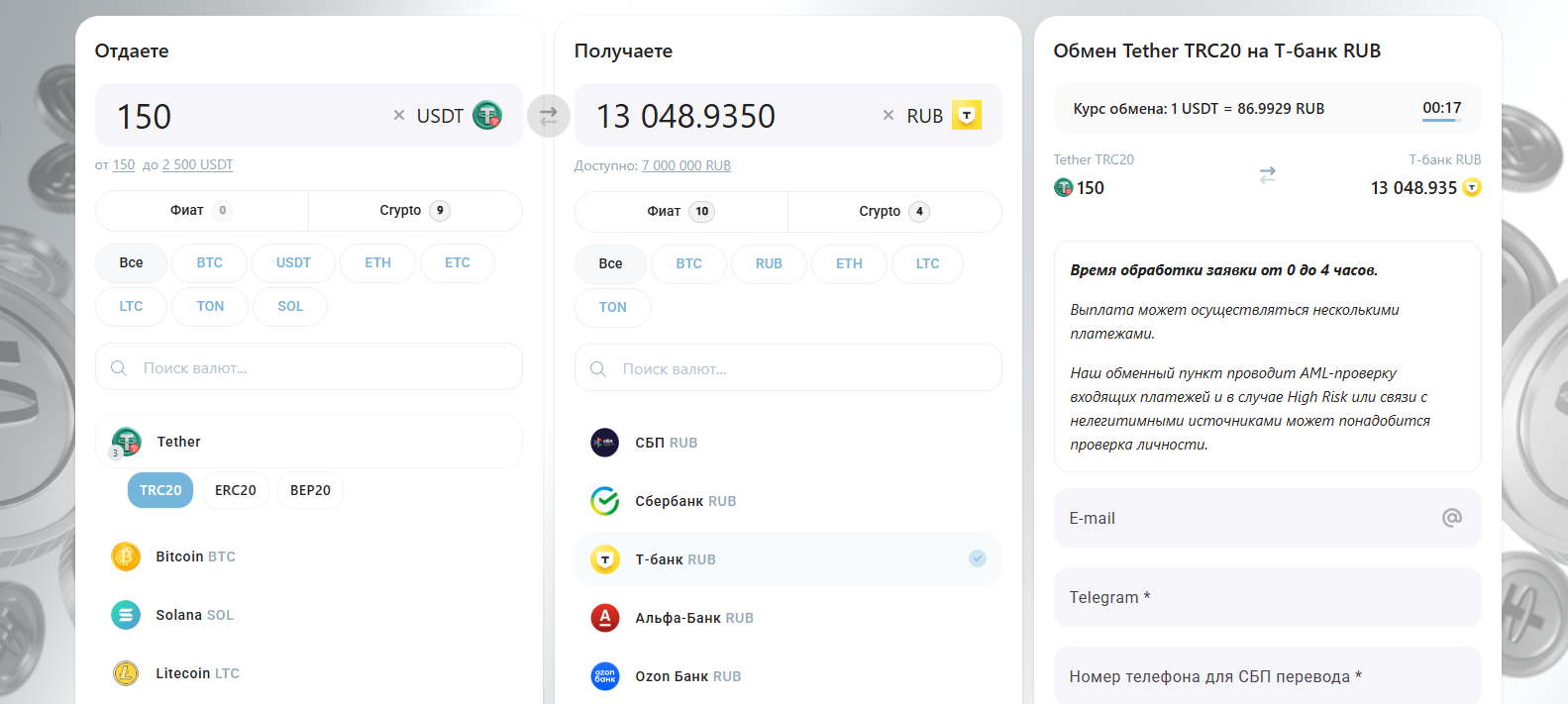 Мы не советуем обменивать крипту на площадке, так как есть риск лишиться сбережений.