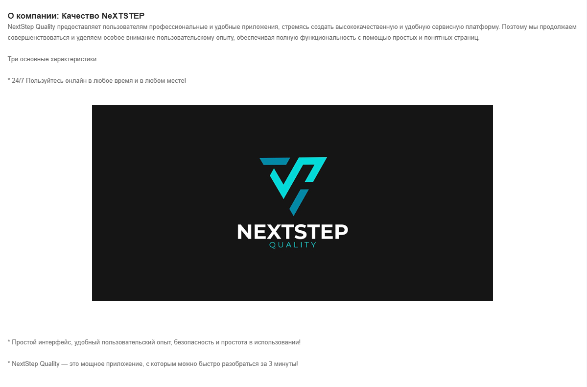 NextStep Quality – это биржа, которая предоставляет пользователям профессиональные «приложения», стремясь к высокому качеству и комфорту в использовании.