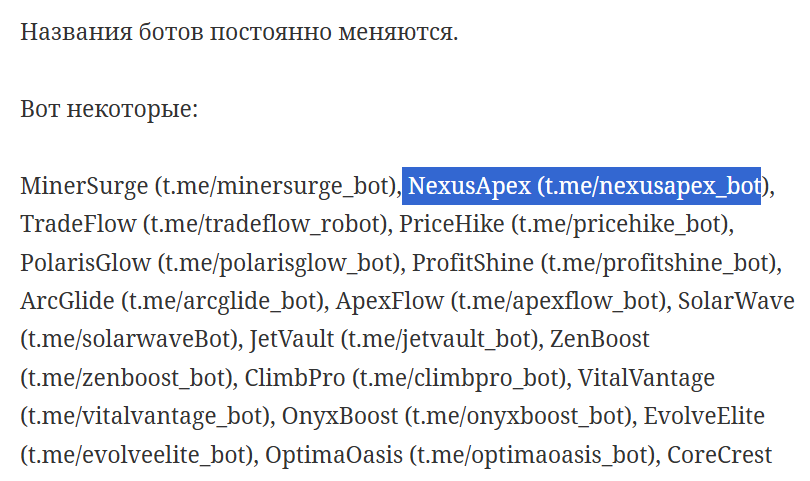 О сервисе для трейдинга Nexus бот отзывы от пользователей напрямую не встречаются, но он периодически появляется в подборках скам-сервисов. С учетом того, что мошенники часто используют большой перечень разных ботов и каналов, которые со временем закрываются, отсутствие комментариев не удивительно.