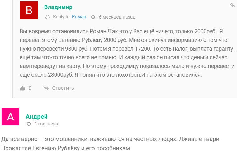 За время работы каналов от админа Nik Torg о них появилось много отзывов, каждый из которых негативный. Их подписчики массово жалуются на потерю вложенных в раскрутку денег.
