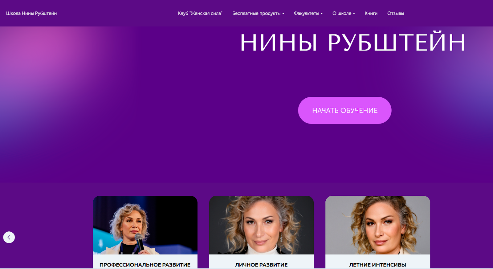 Информация о Нине представлена на нескольких площадках: основной сайт школы rubstein com и дополнительные домены с отдельными лендингами под разные программы.