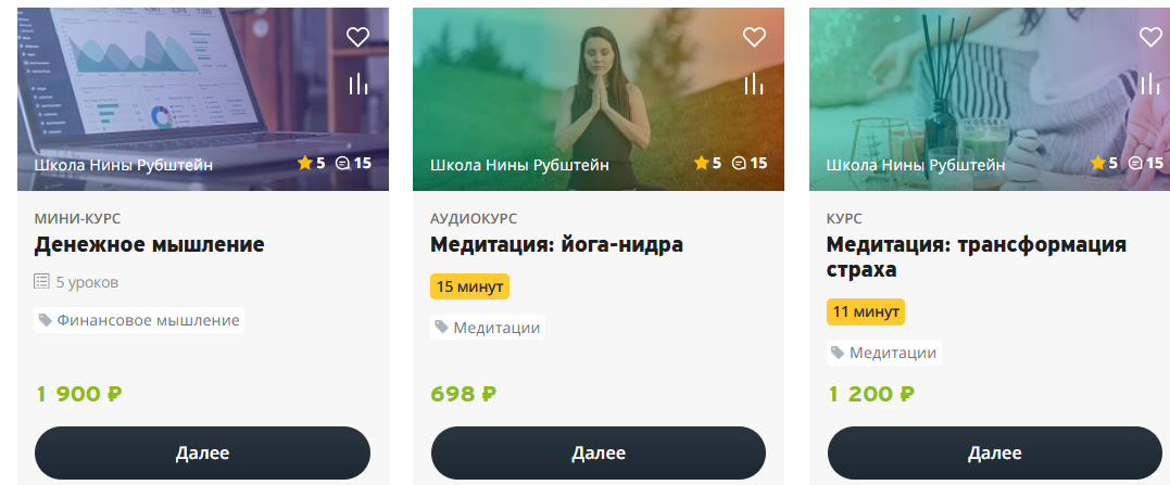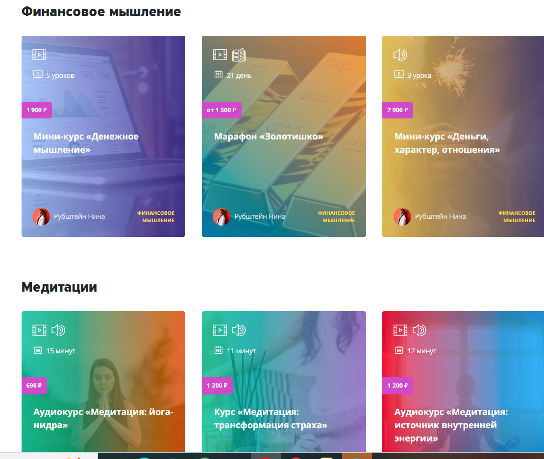 С другой — продукты, нацеленные на широкую аудиторию: марафоны про самооценку, женское состояние, отношения, финансовое мышление, среди которых выделяется курс Нины Рубштейн “Вкус изобилия”, собравший в сети много отзывов.