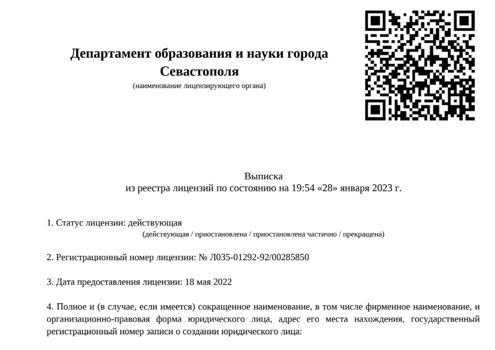 Ключевой юридический момент, который часто подчеркивается в описаниях ее школы, это наличие образовательной лицензии.