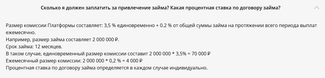 При этом заемщикам нужно оплачивать не только проценты, но и комиссию сервиса – единовременно 3,5% от суммы займа + 0,2% от суммы займа ежемесячно.