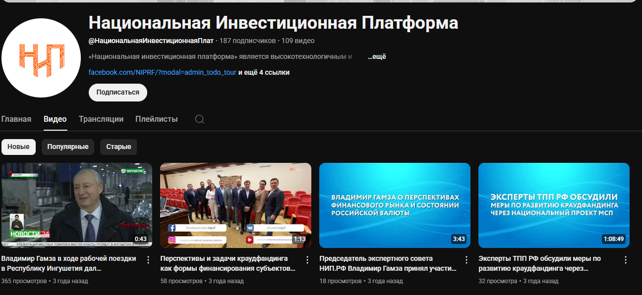 Сервис не пользуется популярностью. При этом продвижение через социальные сети проекта уже достаточно давно прекратилось. Например, последнее видео на канале Национальная Инвестиционная Платформа на Ютуб вышло 3 года назад:
