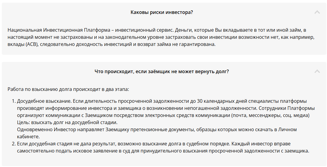 Более того, деньги инвестора не защищены страхованием в случае, если заемщик не будет платить, компания, взявшая заем разорится – вернуть средства будет практически невозможно.