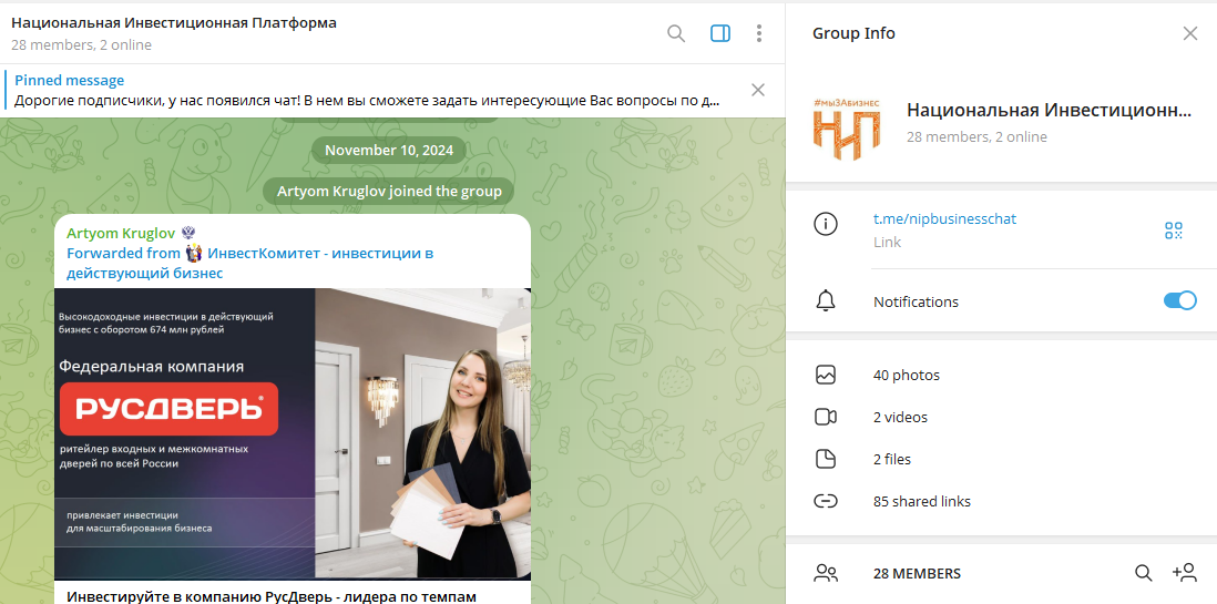 Есть Телеграм-чат с 28 пользователями, в котором ничего не происходило с 10 ноября 2024 года: