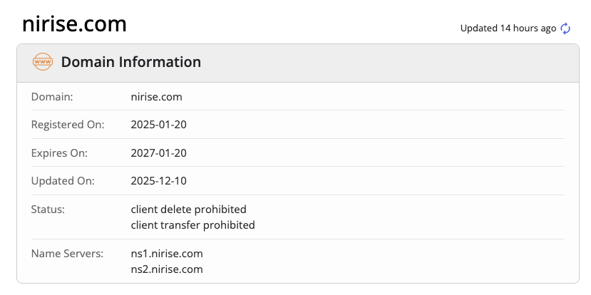 Тем не менее домен работает все же с начала 2025 года. Но его апдейт пришелся на декабрь 2025, что может говорить о том, что именно тогда и был запущен сайт.