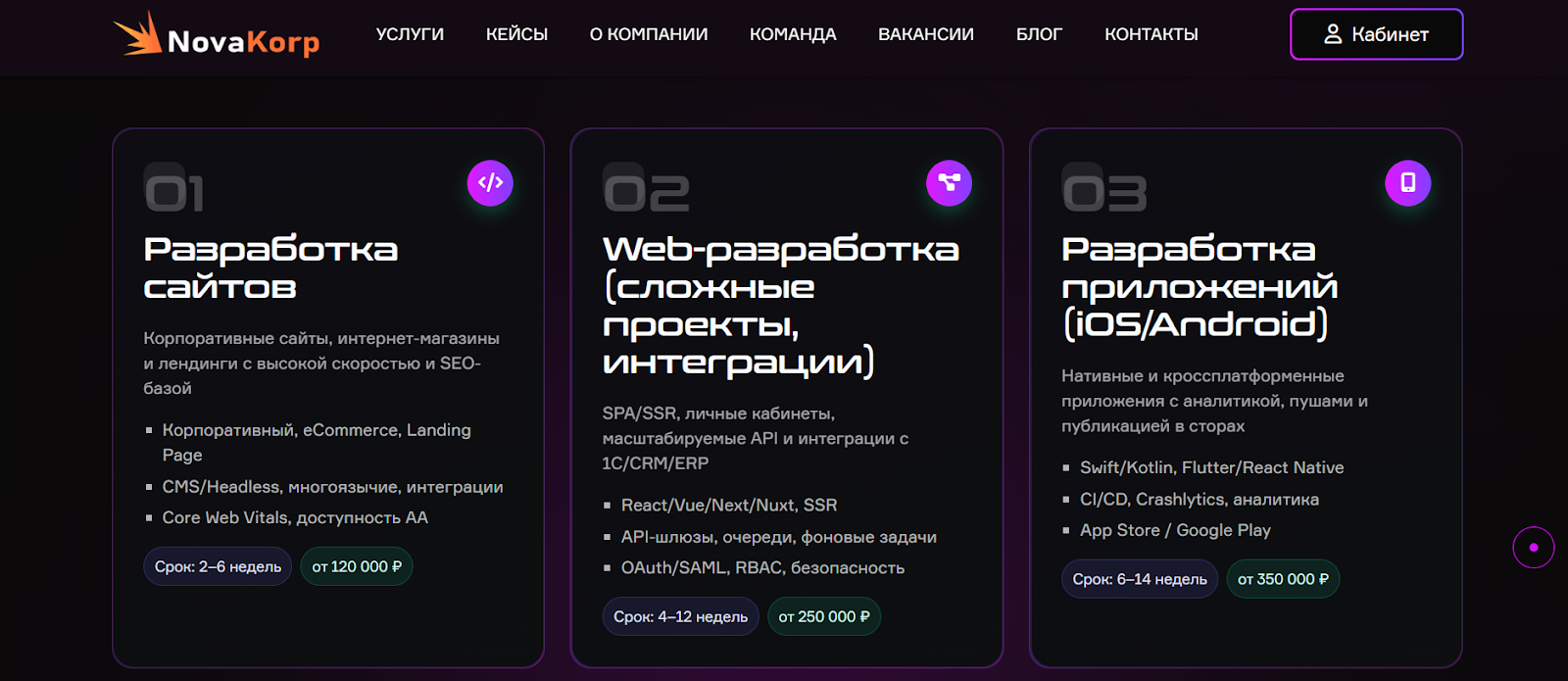 - Web-разработка (масштабные проекты и интеграции);