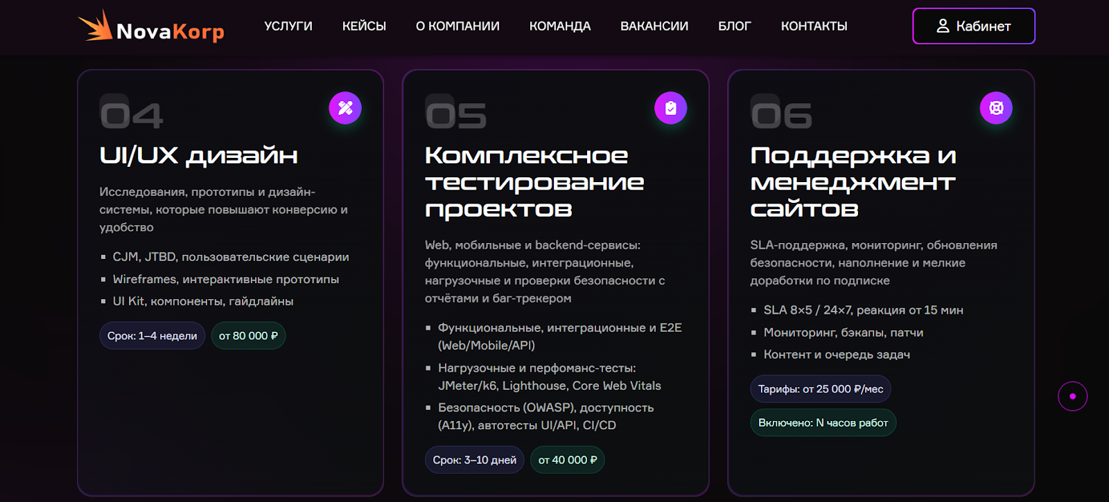 Novakorp: сайт появился в ноябре 2025, а уже хвастается десятками успешных кейсов. Похоже, их «успехи» такие же фейковые, как и их обещания.