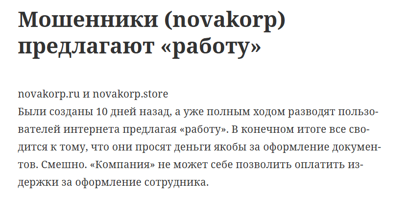 Novakorp – очередной лохотрон! Обещают работу, а в итоге требуют деньги за оформление документов. Сайты-клоны, фейковые отзывы – не ведитесь на этот развод!