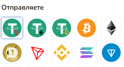 На Novobitex есть возможность менять не только биткоин и этериум, но и другие криптовалюты. Среди доступных есть трон, доге, бинанскоин, солана, тонкон и некоторые другие. При этом точная стоимость каждой валюты при обмене не указывается.