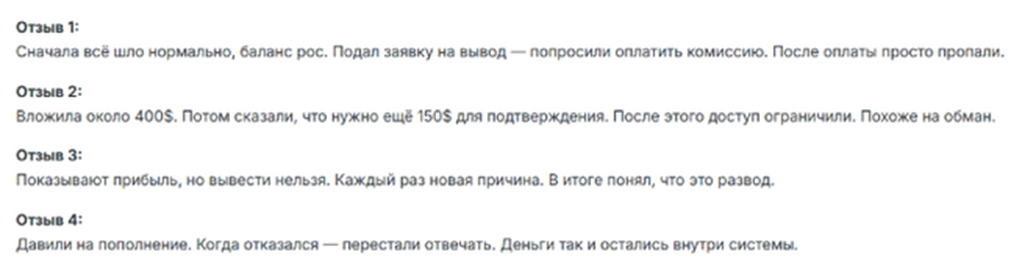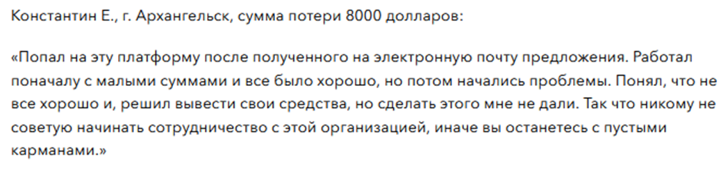 Среди наиболее часто встречающихся причин отказа в выводе – необходимость дополнительной оплаты комиссии. После перевода техподдержка перестает отвечать, доступ к кабинету блокируется. Также могут потребовать внесение подтверждающего депозита. При отказе платить менеджеры пропадают, деньги остаются внутри системы.