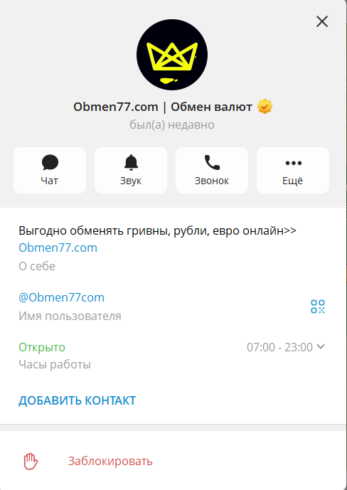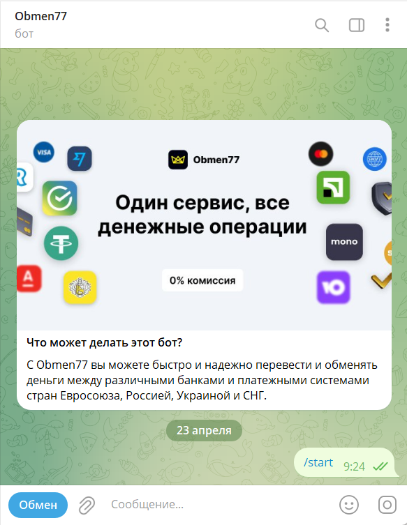Процесс обмена часто переводится в неконтролируемую среду — Telegram-канал Obmen77. Эксперты по кибербезопасности из «Лаборатории Касперского» ранее неоднократно предупреждали о масштабных скам-схемах, где злоумышленники профессионально маскируются под онлайн-обменники в мессенджерах, выманивая у доверчивых пользователей деньги и конфиденциальные личные данные.