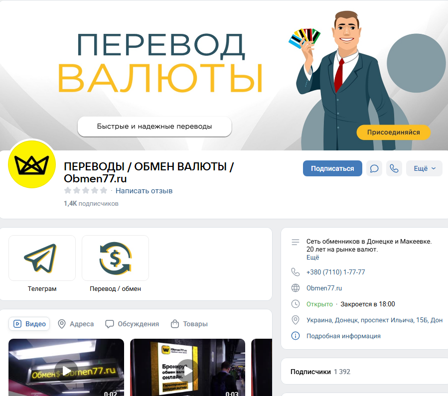 В официальном сообществе ВКонтакте Obmen77 Ru — всего около сотни подписчиков. Эта цифра не сочетается с заявленными тысячами активных клиентов за десятилетие непрерывной работы.