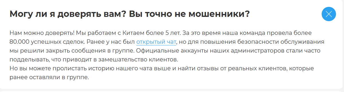 В качестве доказательств, что перед нами не мошенники, администрация дает честное слово, утверждает, что 5 лет работает на рынке и предлагает посмотреть отзывы клиентов «Обмен маркет» в чате их ТГ-канала. Все это не самые убедительные доказательства, но других нет. У компании нет регистрации – это беспокоит больше всего. Деятельность организации нелегальная, доверять подобным фирмам рискованно.