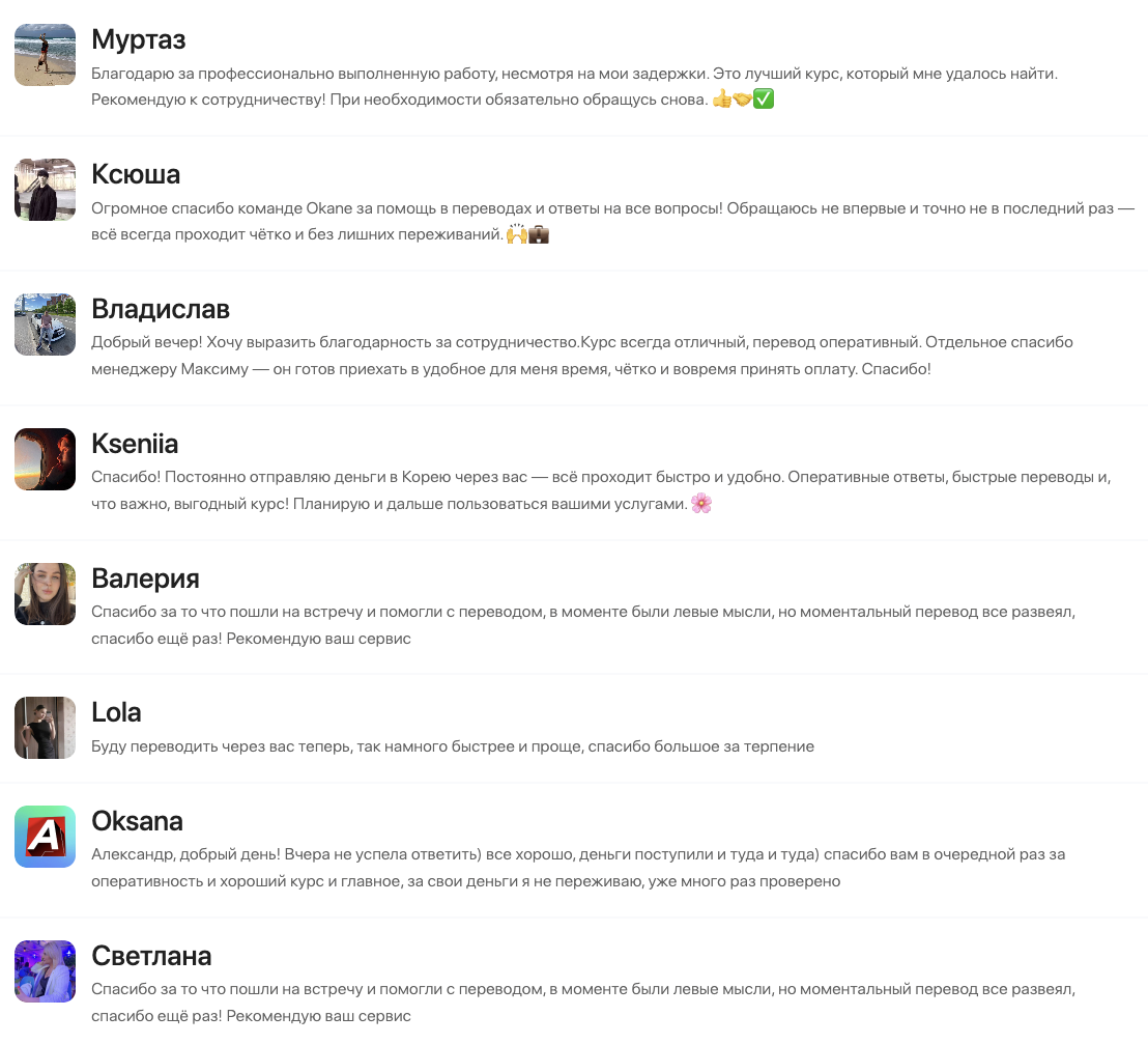 Отзывы о переводе и обмене денег через сервис «Окане» представлены только на сайте самого Okane Transfer. Все они положительные, но верифицировать их авторов совершенно невозможно.
