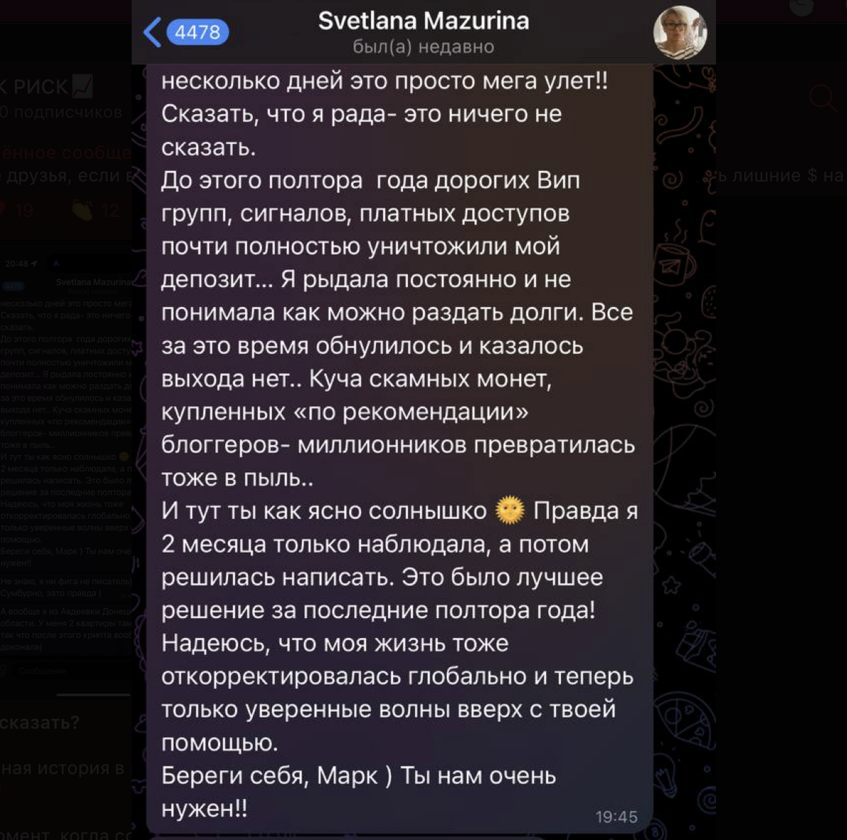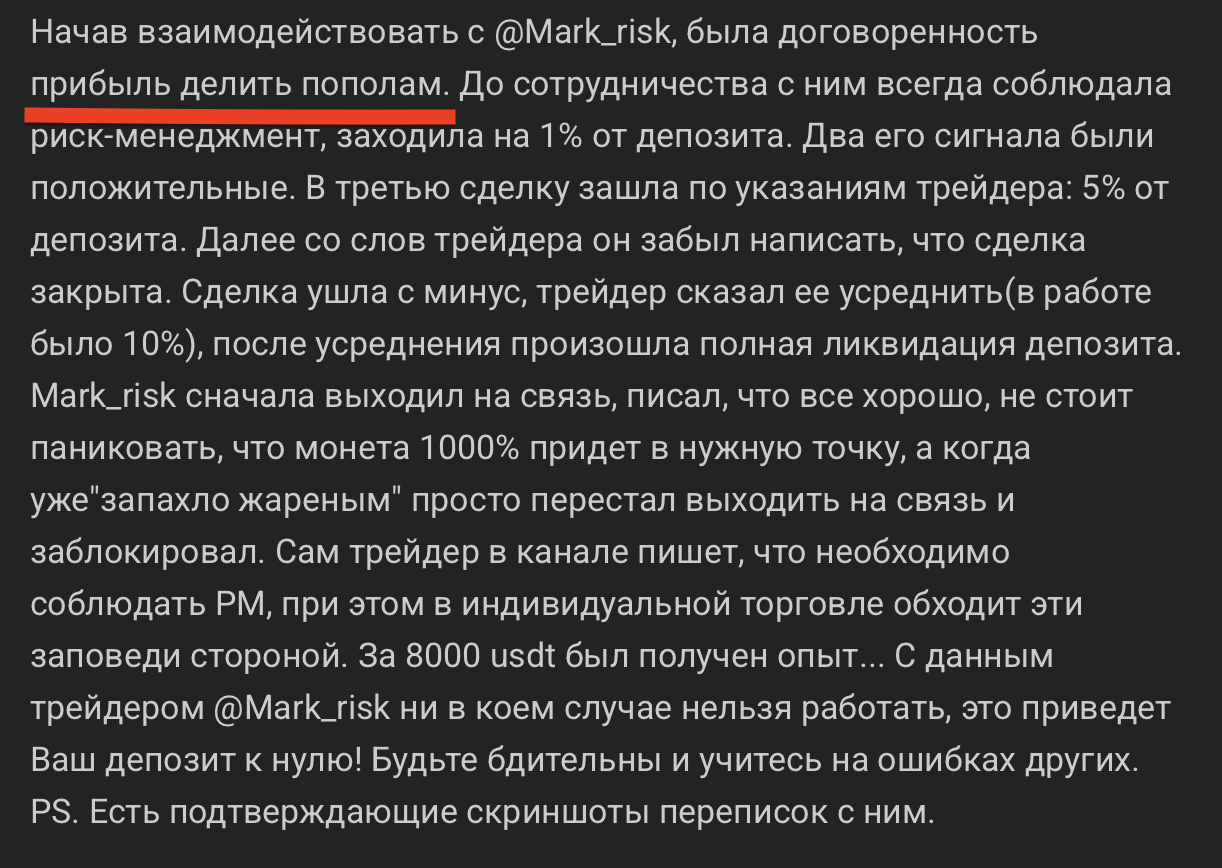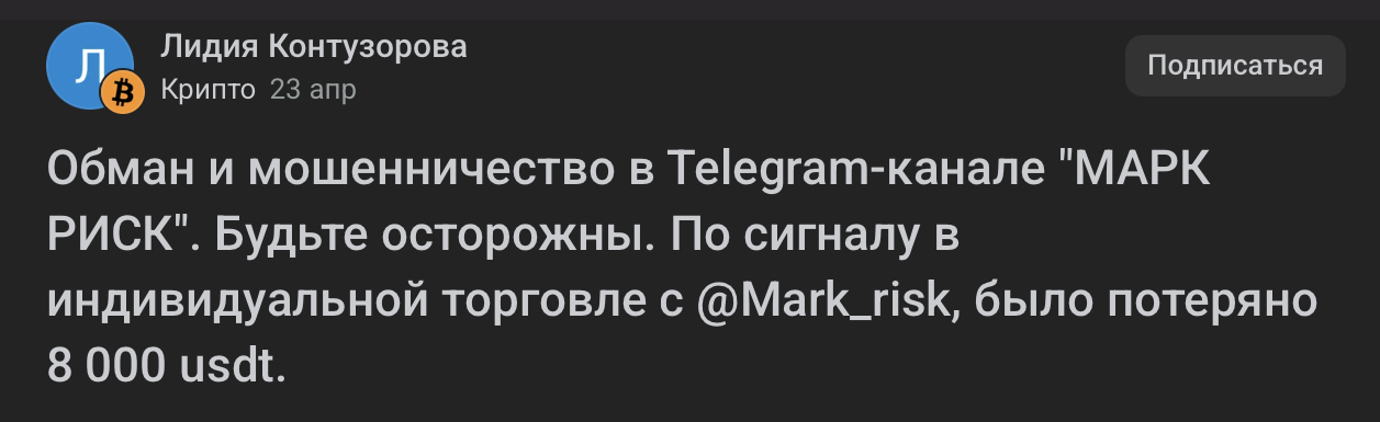 Ссылка привела нас на канал трейдера под псевдонимом «Марк Риск». С этого момента сюжет становится в разы красочнее.