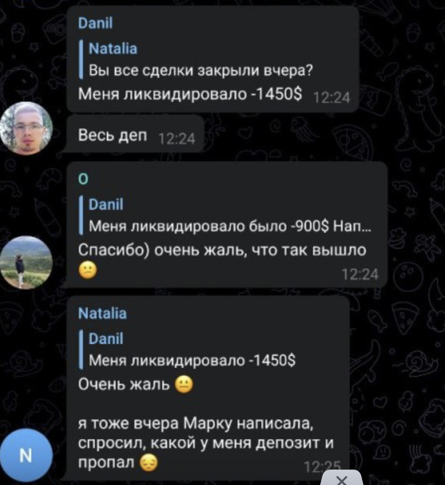 Если серия сделок уходит в минус, админ не признает ошибку: напротив, он пытается выбить дополнительный депозит или нагло предлагает купить у него премиум-портфель. Когда деньги из жертвы выбиты, а потери приближаются к фатальным, скамер ликвидирует депозит игрока и пропадает с радаров. Также мошенник замечен в удалении негативных комментариев и блокировке «неугодных» подписчиков.