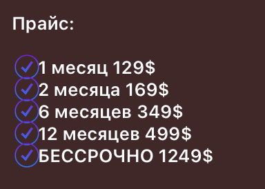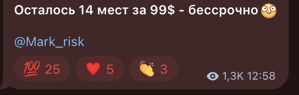 Далее подписчик покупает доступ в премиальный клуб, где ему обещаны детальные разборы, аналитика, приватные сигналы. Вступление в клуб обходится достаточно дорого, но гарантированный стабильный заработок подкупает. Иногда админ объявляет распродажу на бессрочные доступы: «всего» $99 вместо $1249!