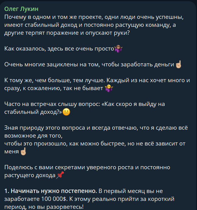 Мы проанализировали деятельность Олега Лукина, рассмотрели историю его проектов и дальнейшее развитие продвигаемых площадок, оценили тг-канал и прочие аспекты работы трейдера. Теперь можем подвести такие итоги: