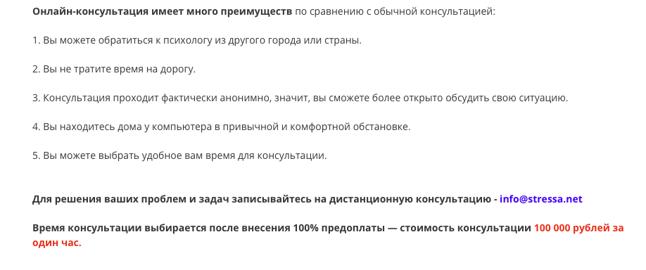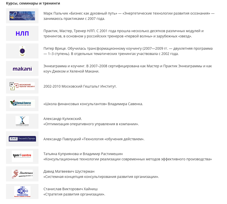 Автор предлагает большой набор услуг: начиная от финансовых и психологических курсов, интенсивов и книг, заканчивая персональными консультациями. Индивидуальные консультации проводятся после 100% предоплаты. Стоимость услуги – 100 тысяч рублей в час.