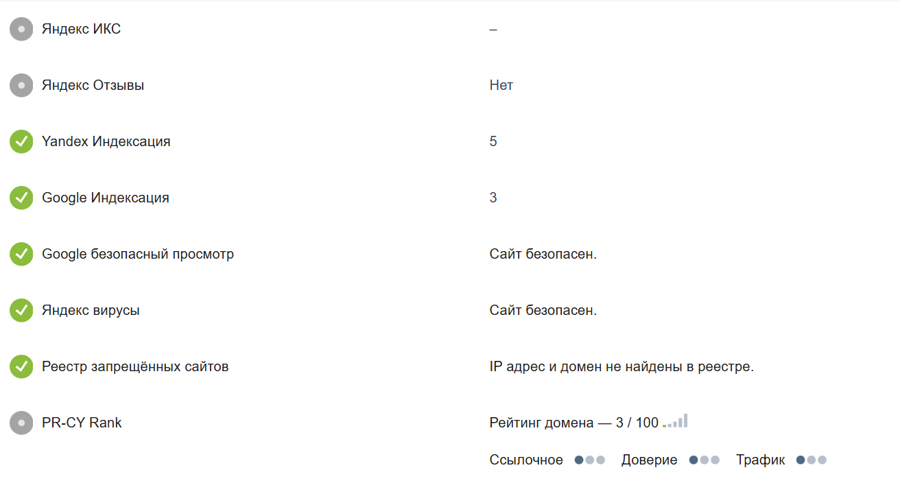 Анализ домена показал крайне небольшое время работы. На начало 2026-го у сайта пока нет Яндекс ИКС. При этом количество страниц в поисковых системах минимально и составляет не более 10. Говорить о хорошей посещаемости платформы пока и вовсе не приходится.