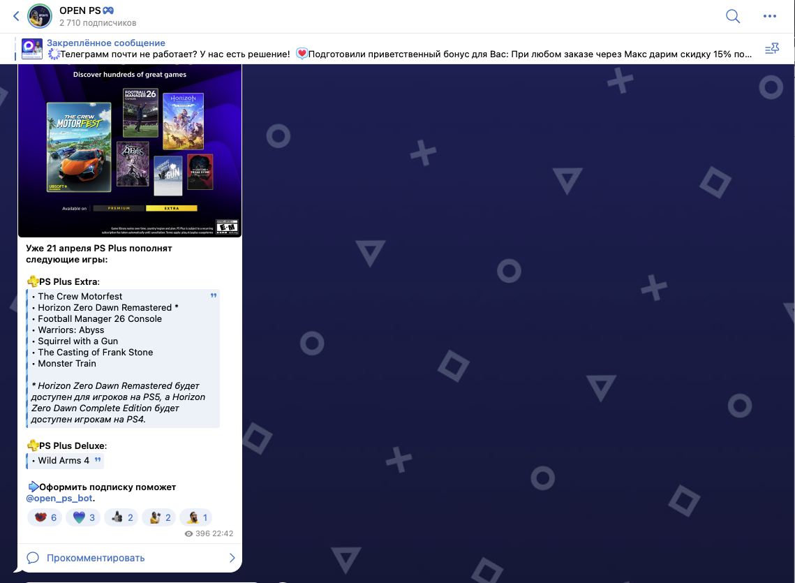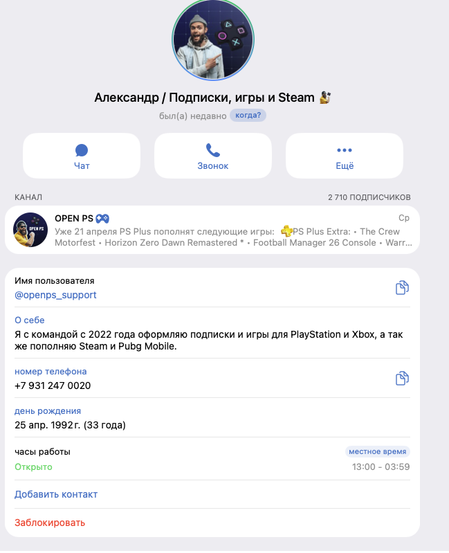 У сервиса OPEN PS есть аккаунт в Телеграмм openps support: