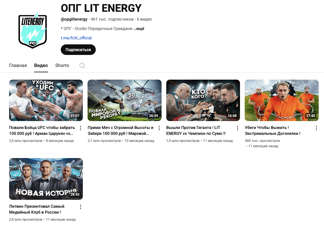 Однако, оригинальнй проект «ОПГ Лит Энержи» не имеет никакого отношения к каналу с раздачей денег. Это вытекает из того, что ссылку на тг-канал fclit officialtg на настоящих аккаунтах бренда нигде не приводят.