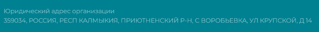 Юридический адрес офиса, зарегистрированный в Республике Калмыкия, с. Воробьевка, ул. Крупской, 14 не подтвержден. На картах этот номер строения не найден.
