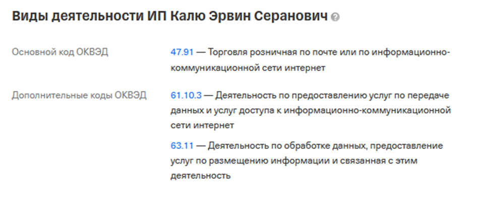 Среди видов деятельности указаны: