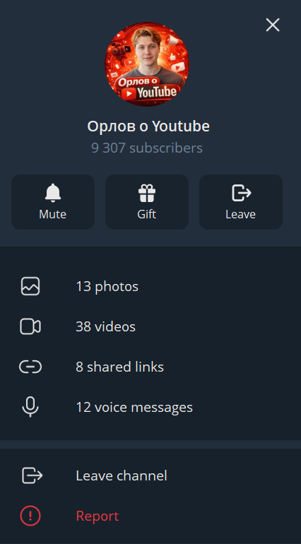 Контактные данные и дата регистрации канала в Телеграме «Орлов о YouTube»