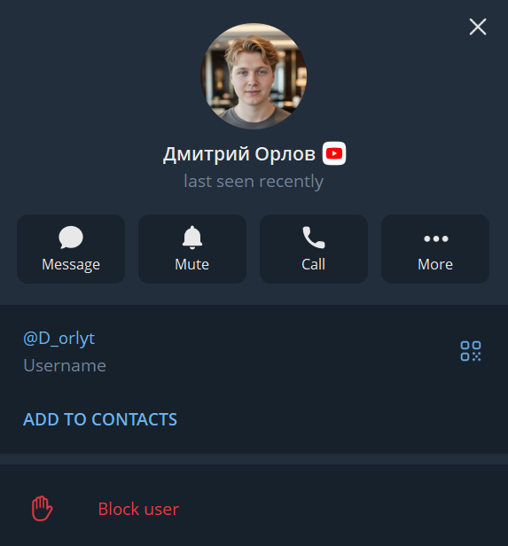 Телеграм-канал «Орлов о YouTube» ведется пользователем под ником D orlyt. В качестве псевдонима автор использует свою фамилию – Орлов. Однако его настоящее имя и другие данные не раскрываются. Группа существует как закрытое сообщество, круг подписчиков ограничен.
