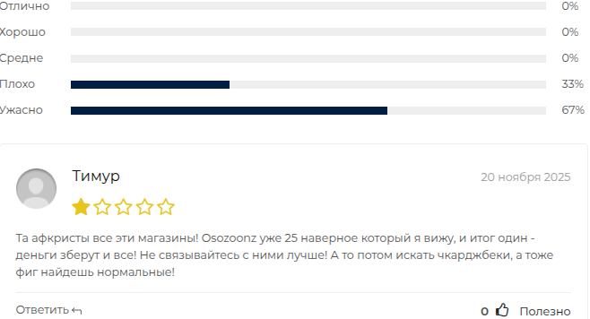 Наша редакция проверила свыше сотни аналогичных платформ, которые маскируются под известные маркетплейсы. Если хотите больше узнать информации об интересующей вас платформе, тогда читайте наши статьи. Ждем вашего отзыва о OsoZoonz ru в комментариях под обзором.