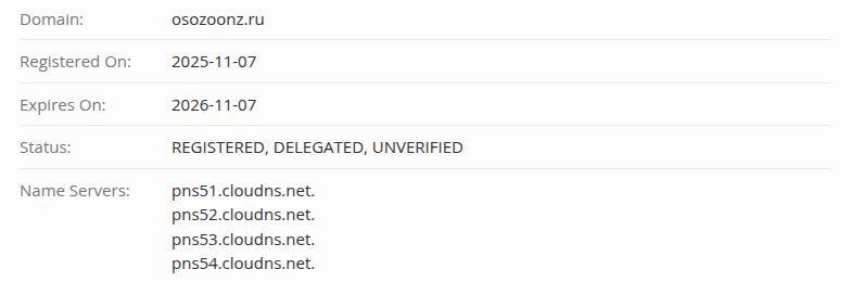 На сайте микро биржи в целом не так много сведений, хотя бы о старте. Данный нюанс мы решили благодаря аналитическому инструменту WHOIS. Итак, проект OsoZoonz ru предлагает услуги с 07.11.2025 года, т.е. существует чуть меньше месяца, поэтому про опытность можно сразу забыть.