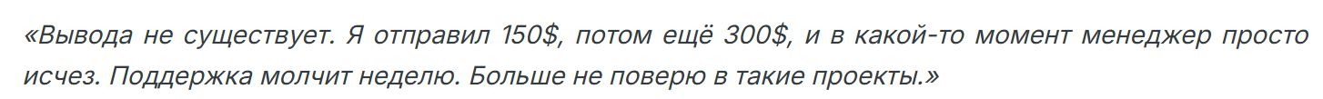 - Пользователи рассказывают множество историй о том, как мошенники забрали их деньги себе, не давая сделать вывод средств под надуманными предлогами.