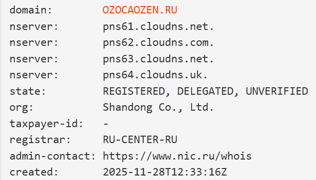 Даже поверхностная проверка позволила убедиться, что Ozocaozen ru — лохотрон:
