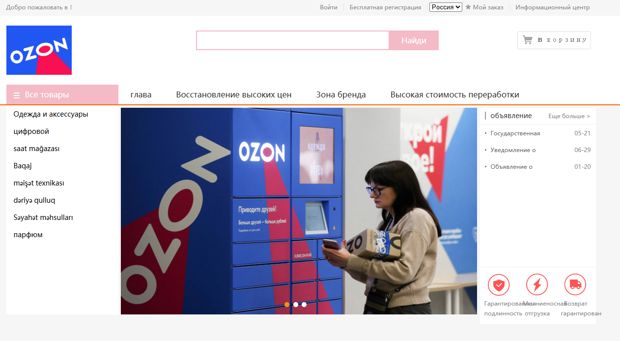 На сайте же Озон5 страница представлена частично на русском языке, частично на азербайджанском. При этом текст похож на очень кривой перевод с другого языка, что также может выдавать низкокачественную подделку. Отдельно заметим и тот факт, что у сайта нет фавикона, тайтла.