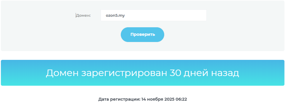 Проверка возраста домена показала, что сайт был зарегистрирован только в середине ноября 2025 года. То есть на время проведения проверки веб-ресурсу только один месяц.