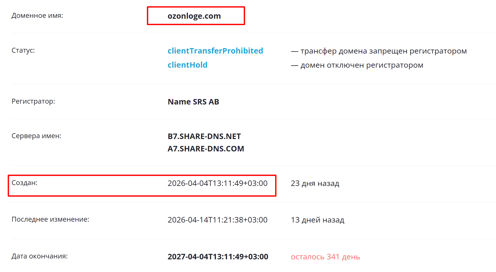 Домен Ozonloge com был приобретен анонимным владельцем 4 апреля 2026 года. Сейчас при попытке зайти на сайт вылетает ошибка. Никакой информации о компании на таких площадках нет, они используют логотип популярного маркетплейса, в данном случае Озона, и сразу требуют у пользователя пройти регистрацию. Реквизиты, контакты, документация конторы отсутствуют, социальных сетей проект не имеет. Иногда для оформления аккаунта требуется пригласительный код, без которого создать личный кабинет невозможно.