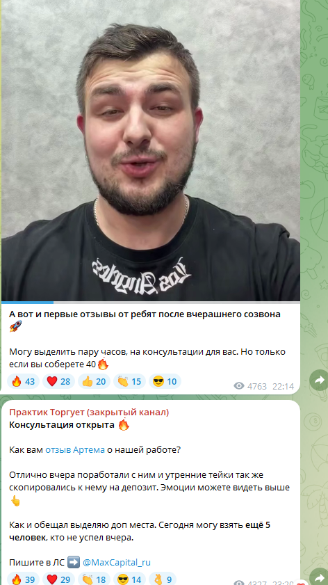 Более того, этот же пользователь исполнял роль другого скам-трейдера, но его канал уже был удален: