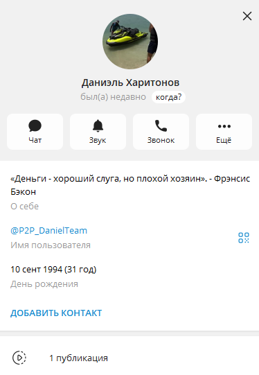 Его автором указан все тот же Даниэль Харитонов, но юзернейм другой – P2P_DanielTeam. У Владимира и Данила на аккаунтах даже дата рождения прописана одна и та же: