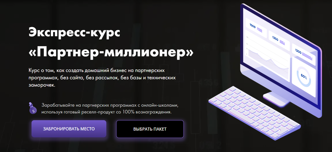 Курсы Юлии Литвиной связаны с заработком в интернете. Программа Партнер-миллионер связана с заработком на реферальных программах. При этом в описании указано, что для старта не требуются ни база, ни сайт, ни рассылки.