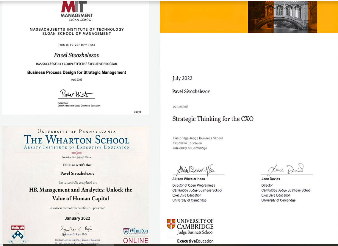 На сайте есть дипломы, информация о том, что Павел Сивожелезов учился в бизнес-школах и повышает квалификацию. Лицензии на образование у автора нет, а значит программы и курсы, которые он проводит – это авторские обучающие проекты, а не официальное MBA.