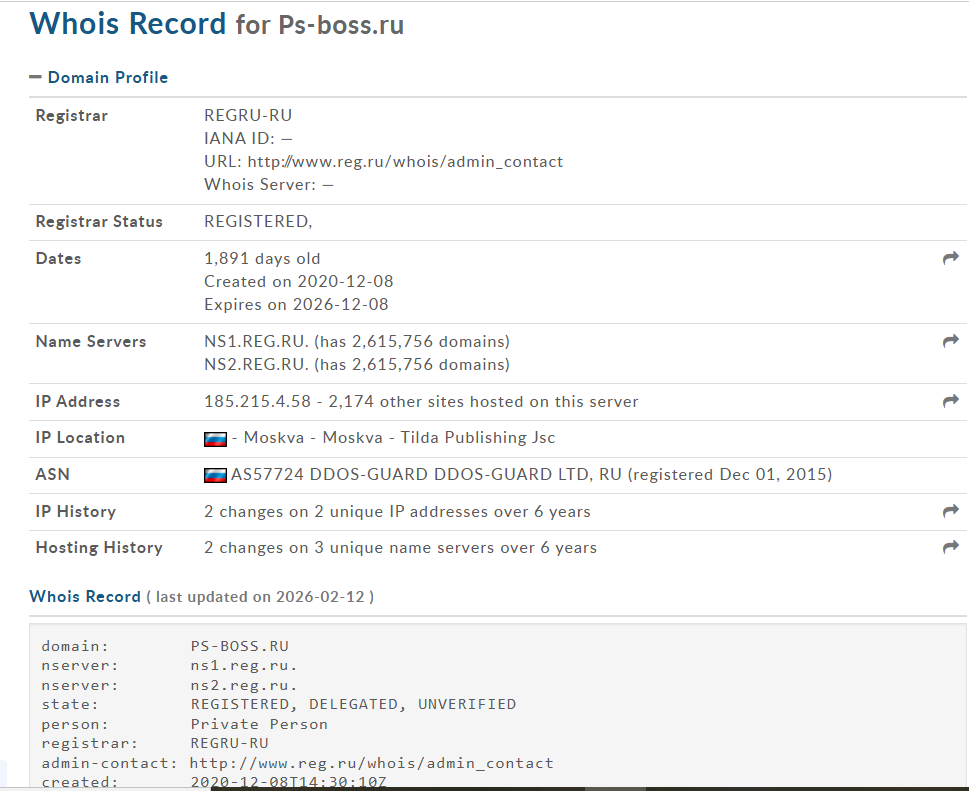 У проекта Павла Сивожелезова два сайта: Ps boss ru и PavelSivozhelezov ru с похожим содержанием. По данным Whois первый ресурс запустился в декабре 2020 года и на февраль 2026 года ему пять лет.