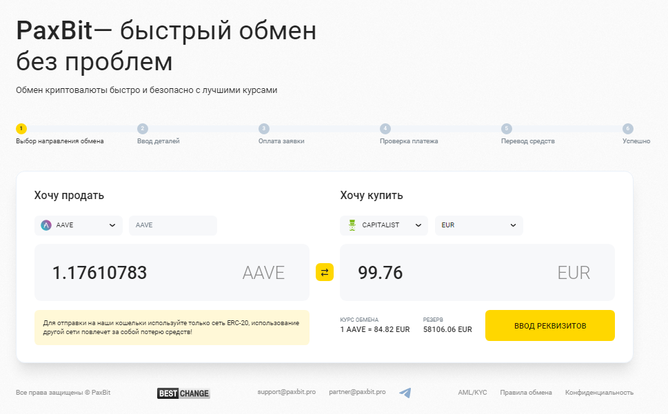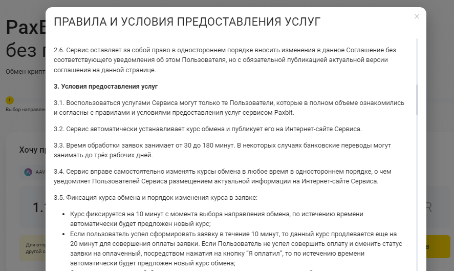 - Паксбит работает круглосуточно, регистрироваться для проведения обмена не нужно;